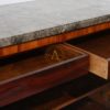 En bois de placage d’amarante et de bois de rose, reposant sur 4 pieds ronds. Façade et côtés plats. Dessus de marbre gris saint Anne.
