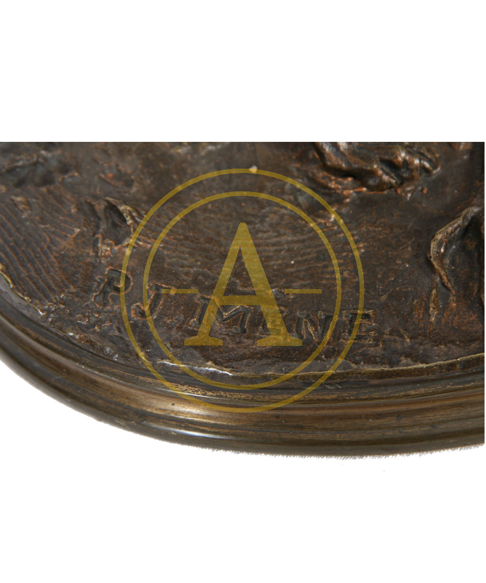 Bronze with patina, on a molded naturalistic oval base, signed on the terrace “P.J.MENE” (1810-1879).