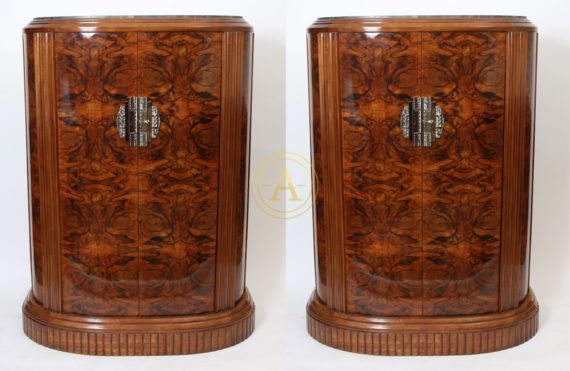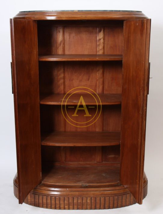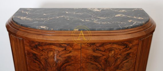 Walnut and walnut veneer, portor marble top, locks in silver metal. Command furniture for a large Monegasque residence. Manufacture in its workshops around the years 20/30.